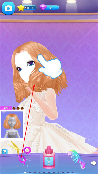 2、按照提示操作美發(fā)工具,對人物頭發(fā)進行修剪等處理,完成美發(fā)步驟。