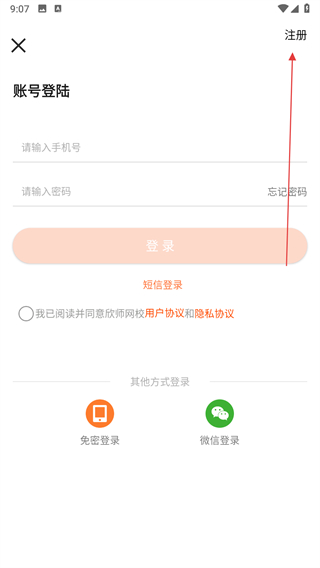 4、在賬號登錄頁面,可選擇輸入手機號和密碼登錄,或點擊“短信登錄”,按提示操作,同時勾選同意相關(guān)協(xié)議后完成登錄。