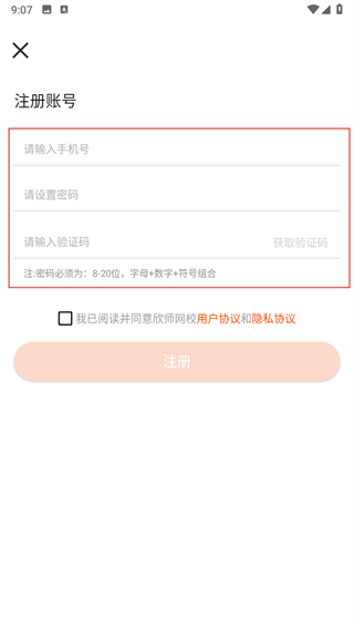 4、輸入手機號,設(shè)置密碼,輸入驗證碼點擊注冊。