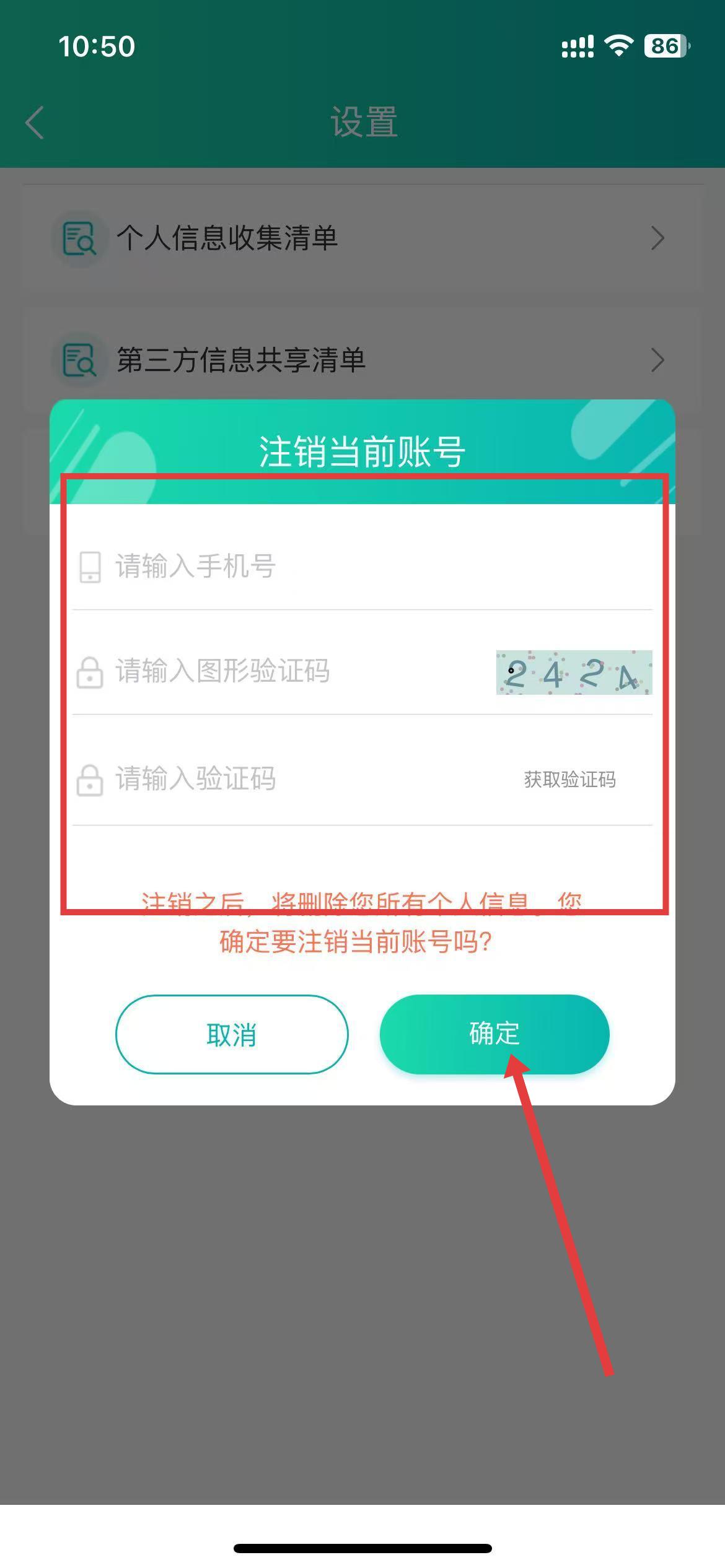 4、按照頁面提示填寫信息,確認(rèn)信息無誤后點(diǎn)擊確定,完成賬號(hào)注銷。