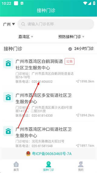 1、在粵苗App首頁點(diǎn)擊底部的接種門診,進(jìn)入接種門診頁面。