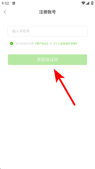 3、在注冊(cè)賬號(hào)頁(yè)面,輸入手機(jī)號(hào)后,點(diǎn)擊獲取驗(yàn)證碼。