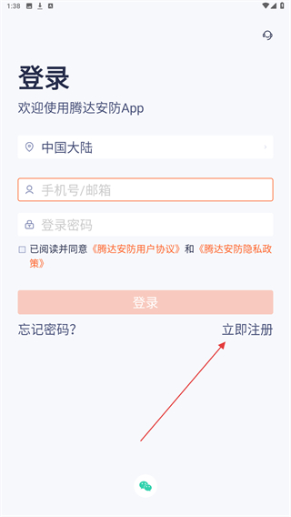 1、打開騰達安防監(jiān)控,進入時點擊右下方立即注冊。