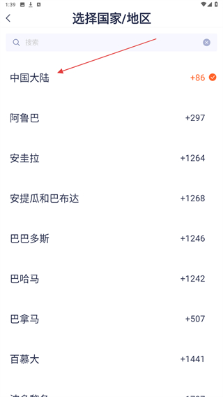 2、在選擇國家/地區(qū)的界面內(nèi),選擇并點擊名稱。