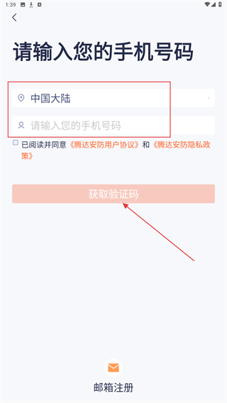 3、輸入手機號后,點擊獲取驗證碼即可注冊成功。