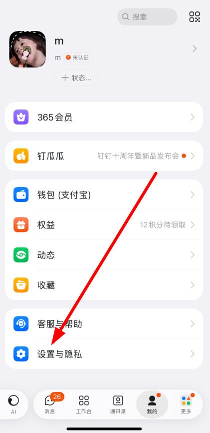 1、在個(gè)人頁(yè)面里找到并點(diǎn)擊設(shè)置與隱私選項(xiàng)。
