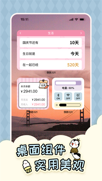 倒數(shù)321app是很受女生用戶喜愛的倒計(jì)時(shí)軟件,不僅提供了各種萌萌的皮膚模板,還支持將重要日程一一添加進(jìn)去,用戶可挑選喜歡的模板搭配使用,無論是需要記錄考試時(shí)間的學(xué)生族,還是要跟進(jìn)重要會(huì)議的上班族,都能通過它精準(zhǔn)倒計(jì)時(shí),再也不錯(cuò)過一場(chǎng)考試、一次約會(huì)或是一個(gè)關(guān)鍵的會(huì)議安排,實(shí)用又充滿少女心,貼合日常日程管理需求。