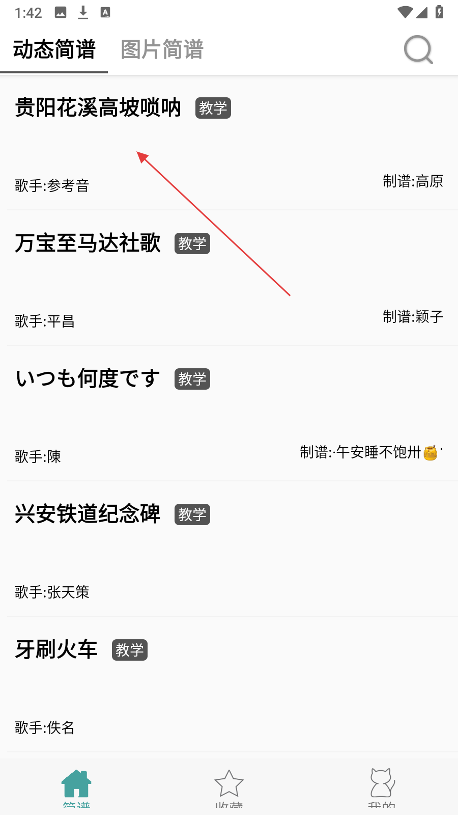 1、打開簡譜軟件,在動(dòng)態(tài)簡譜或圖片簡譜頁面中,點(diǎn)擊想要學(xué)習(xí)的簡譜曲目,進(jìn)入簡譜詳情頁面。
