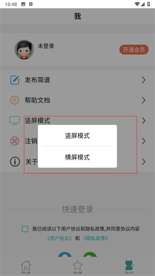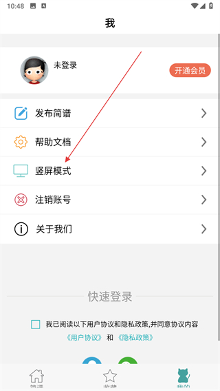 2、在我的頁面,點(diǎn)擊豎屏模式選項(xiàng)。