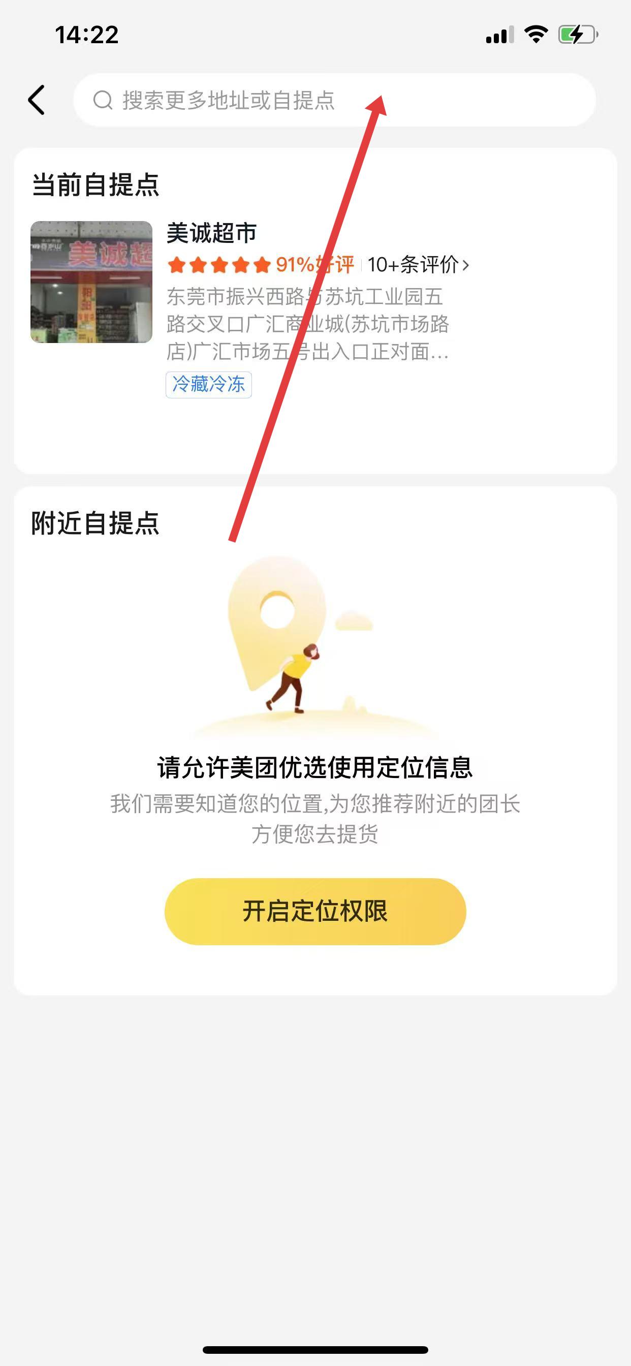 2、進(jìn)入自提點(diǎn)相關(guān)頁面后,點(diǎn)擊頂部搜索更多地址或自提點(diǎn)的搜索欄。