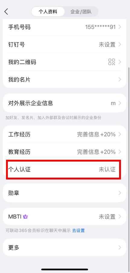 3、在個(gè)人資料界面里,找到并點(diǎn)擊個(gè)人認(rèn)證選項(xiàng)。
