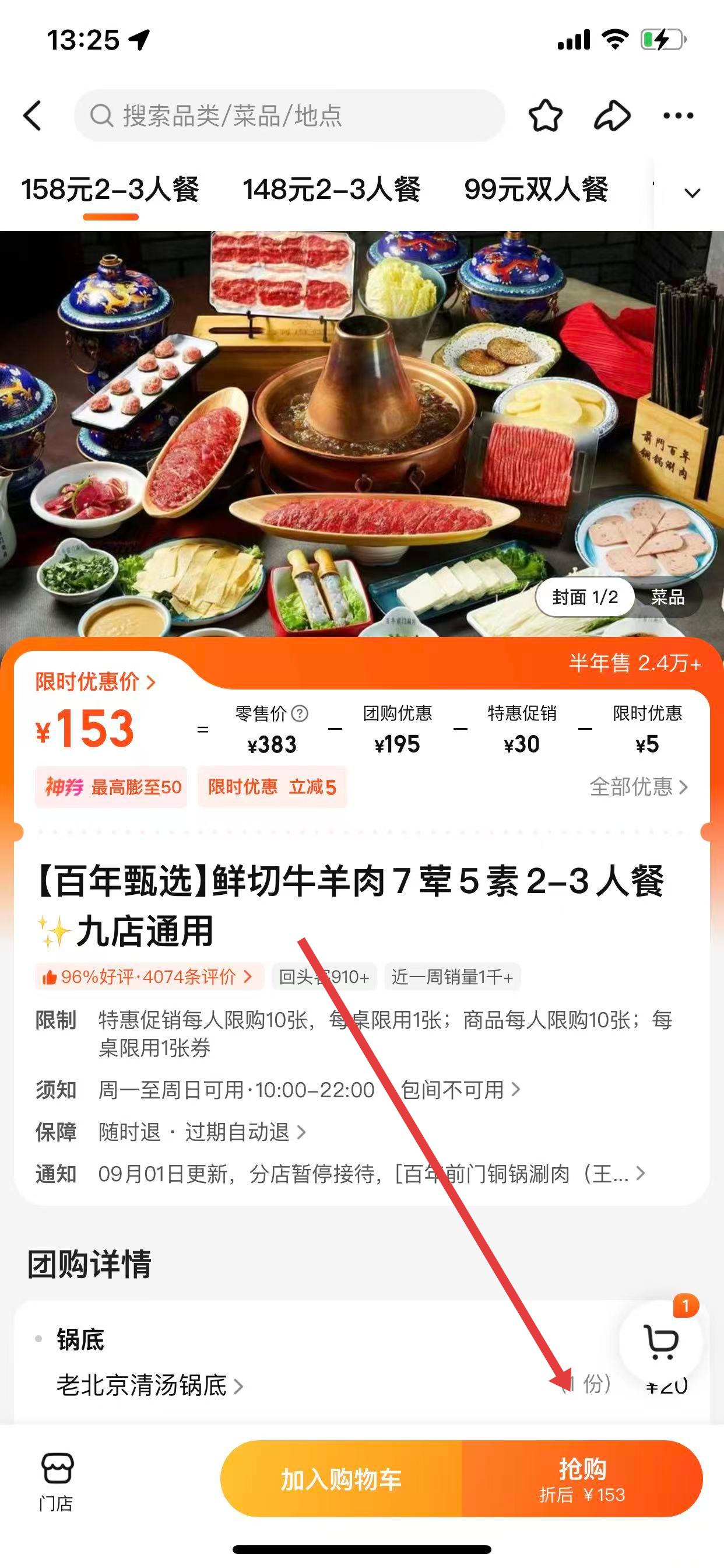 2、在團(tuán)購(gòu)頁(yè)面,找到想要購(gòu)買的團(tuán)購(gòu)商品后,點(diǎn)擊進(jìn)入商品詳情頁(yè)。
