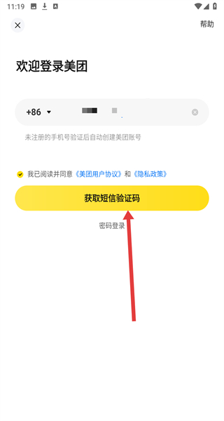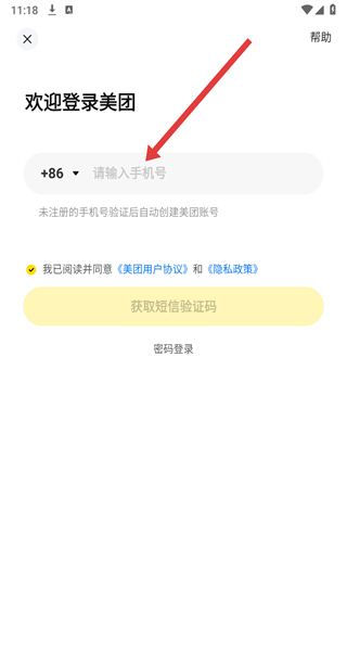 2、在登錄頁(yè),點(diǎn)擊輸入框填寫手機(jī)號(hào),以便獲取驗(yàn)證碼進(jìn)行登錄。
