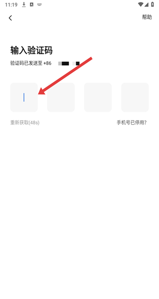 4、在進(jìn)入到驗(yàn)證頁(yè)面中,點(diǎn)擊輸入框填寫驗(yàn)證碼,即可完成手機(jī)號(hào)登錄。