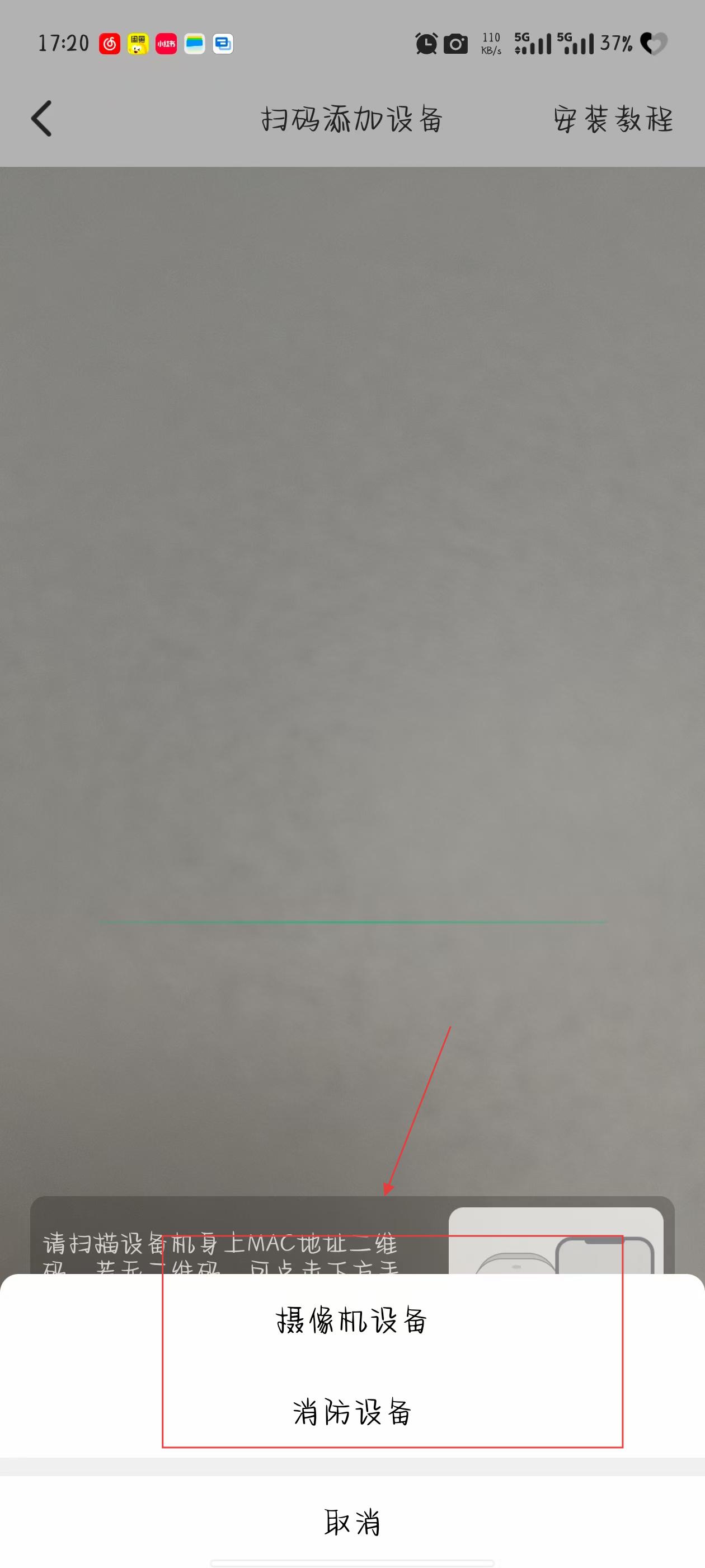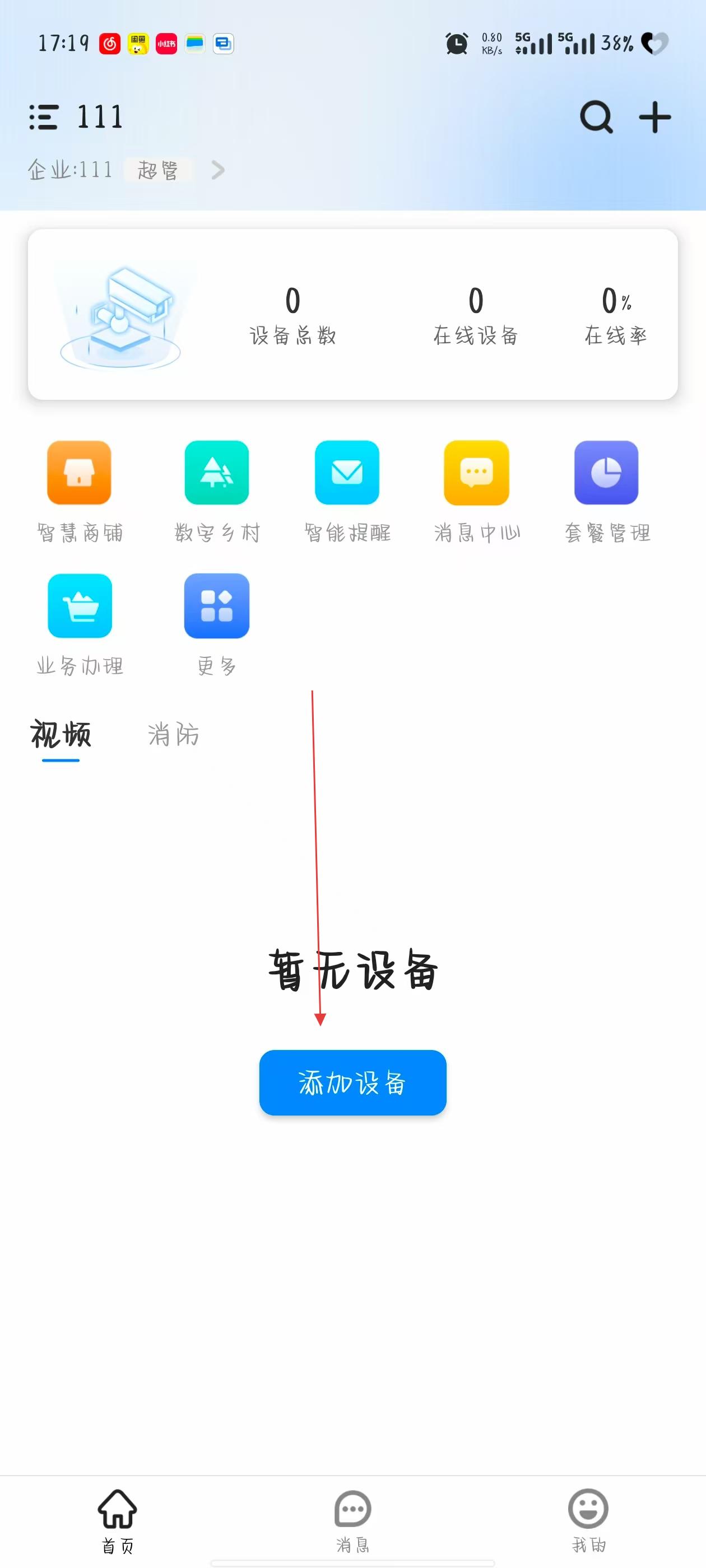 1、打開移動千里眼APP,在首頁點擊添加設備按鈕,進入掃碼添加設備頁面。