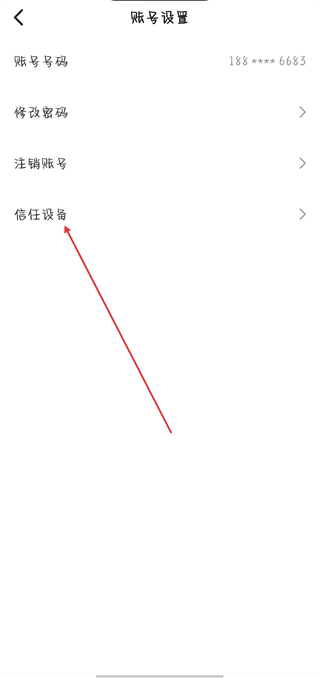 3、在賬號設置頁面,點擊信任設備選項。