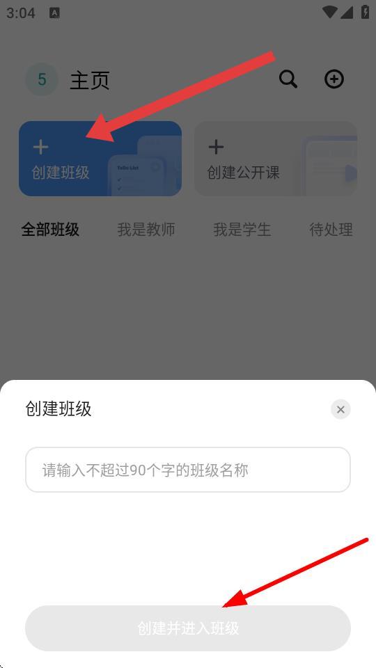 1、先點擊創(chuàng)建班級,輸入名稱后點擊創(chuàng)建并進入班級,進入班級頁面。