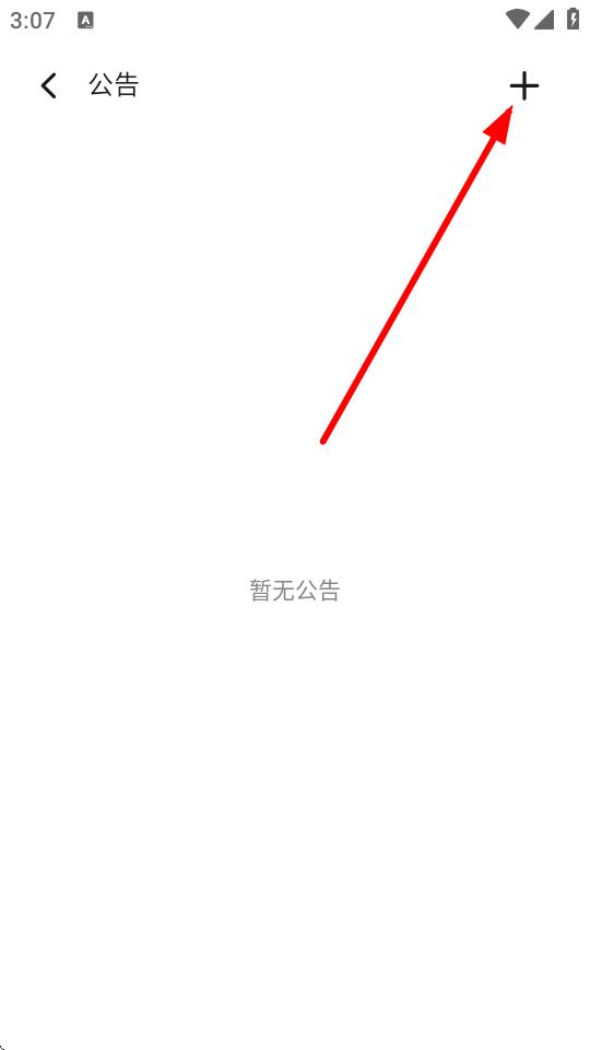 3、在公告的界面,需要點擊右上角+按鈕,進入發(fā)布公告的頁面。