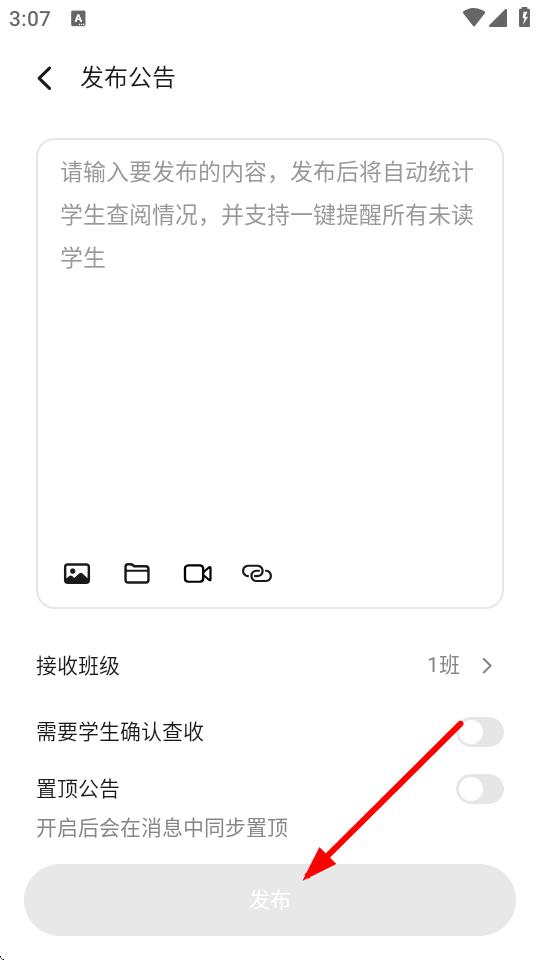 4、在發(fā)布公告頁面,輸入公告內(nèi)容后點擊發(fā)布,完成群公告發(fā)布。
