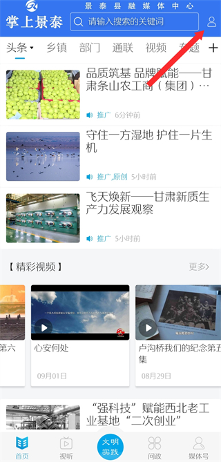 1、在掌上景泰首頁(yè),點(diǎn)擊右上角個(gè)人圖標(biāo),進(jìn)入個(gè)人頁(yè)面。