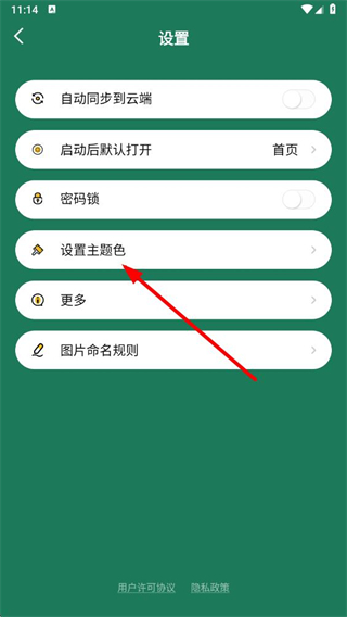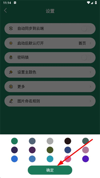 3、在設置界面中,點擊設置主題色選項,彈出主題色選擇面板。