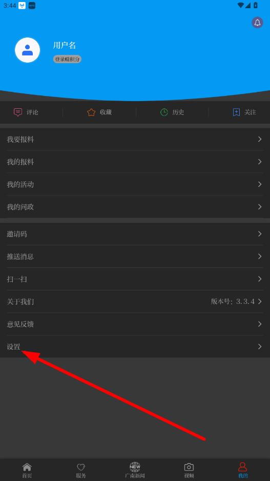 1、打開今日廣南app,點(diǎn)擊底部導(dǎo)航欄中的我的進(jìn)入個人頁面。