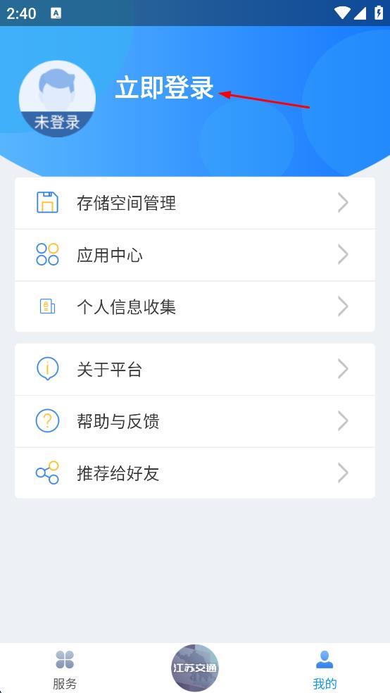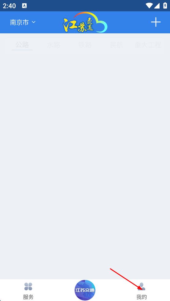 2、在江蘇交通首頁,點(diǎn)擊右下角我的,進(jìn)入個(gè)人頁面。