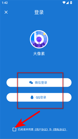 3、在登錄頁(yè)面,先勾選已閱讀并同意,再選擇微信登錄或QQ登錄,按照提示完成授權(quán)操作即可登錄賬號(hào)。