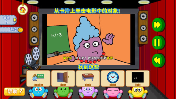 每個(gè)單元里有九節(jié)課,且前三個(gè)單元的課程都是免費(fèi)的。課程的形式多樣,包括“拼寫單詞”、“語(yǔ)法”、“電影”,以及“脫口秀”等等。整個(gè)項(xiàng)目里一共包含1200個(gè)單詞以上,小朋友可以通過(guò)玩生動(dòng)的游戲和完成小測(cè)試不經(jīng)意地掌握這些單詞和句子。