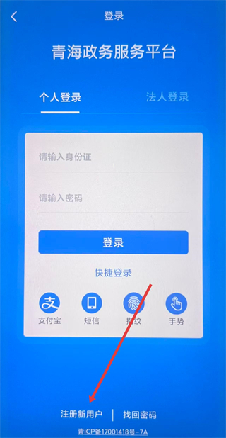 2、在當前頁面中,進入登錄界面,點擊底部的注冊新用戶選項。