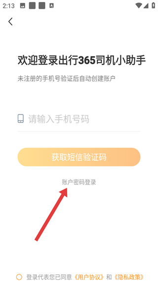 2、在進(jìn)入到應(yīng)用登錄界面中時,可以點擊下方賬戶密碼登錄按鈕,切換登錄方式。