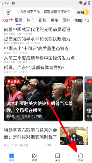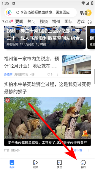 1、打開(kāi)騰訊新聞APP,點(diǎn)擊底部導(dǎo)航欄我的,進(jìn)入個(gè)人頁(yè)面。