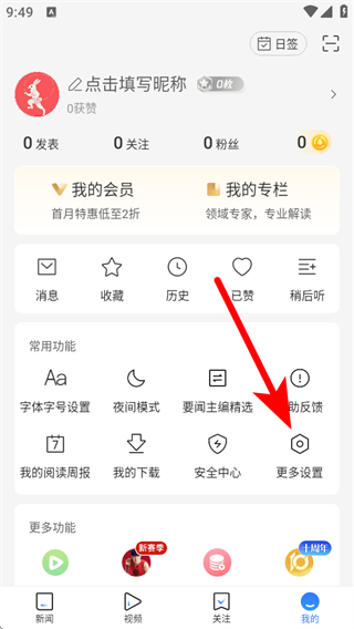 2、在個(gè)人的頁(yè)面,需要點(diǎn)擊更多設(shè)置的按鈕,進(jìn)入設(shè)置的頁(yè)面。