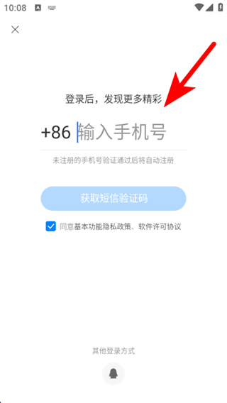 2、我們可以選擇手機(jī)號(hào)登錄方式,輸入中國(guó)大陸手機(jī)號(hào)碼。