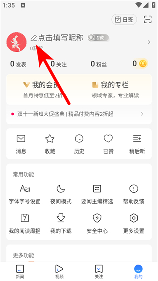 1、打開(kāi)騰訊新聞APP,點(diǎn)擊右下角我的,進(jìn)入個(gè)人頁(yè)面。