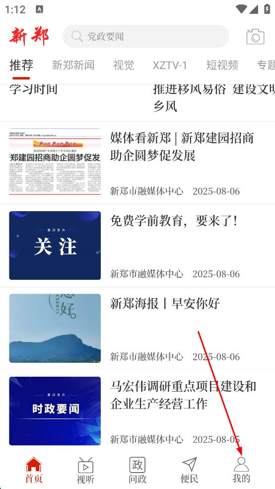 2、在云上新鄭首頁(yè),點(diǎn)擊右下角我的,進(jìn)入個(gè)人頁(yè)面。