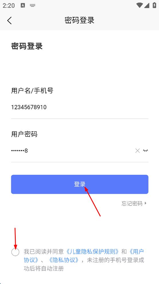 4、勾選“我已閱讀并同意兒童隱私保護(hù)規(guī)則和用戶協(xié)議,隱私協(xié)議,點(diǎn)擊“登錄”按鈕,完成登錄操作。