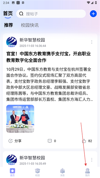 1、打開新華智慧校園APP,點(diǎn)擊我的,即可進(jìn)入個(gè)人頁面。
