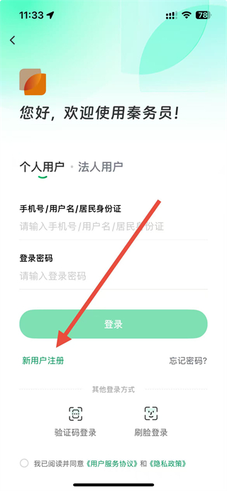 2、在登錄頁面,點擊新用戶注冊選項,進入注冊頁面。