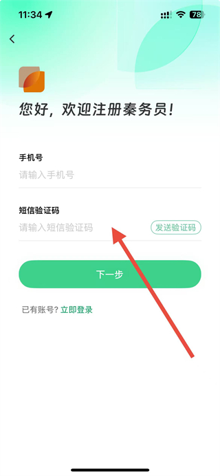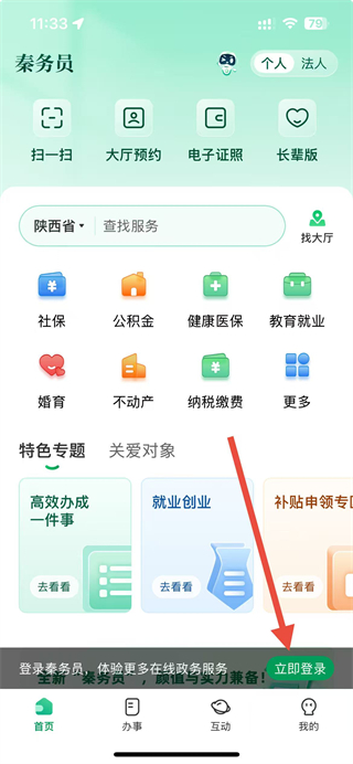 1、打開秦務(wù)員app,在首頁點擊立即登錄按鈕,進入登錄頁面。