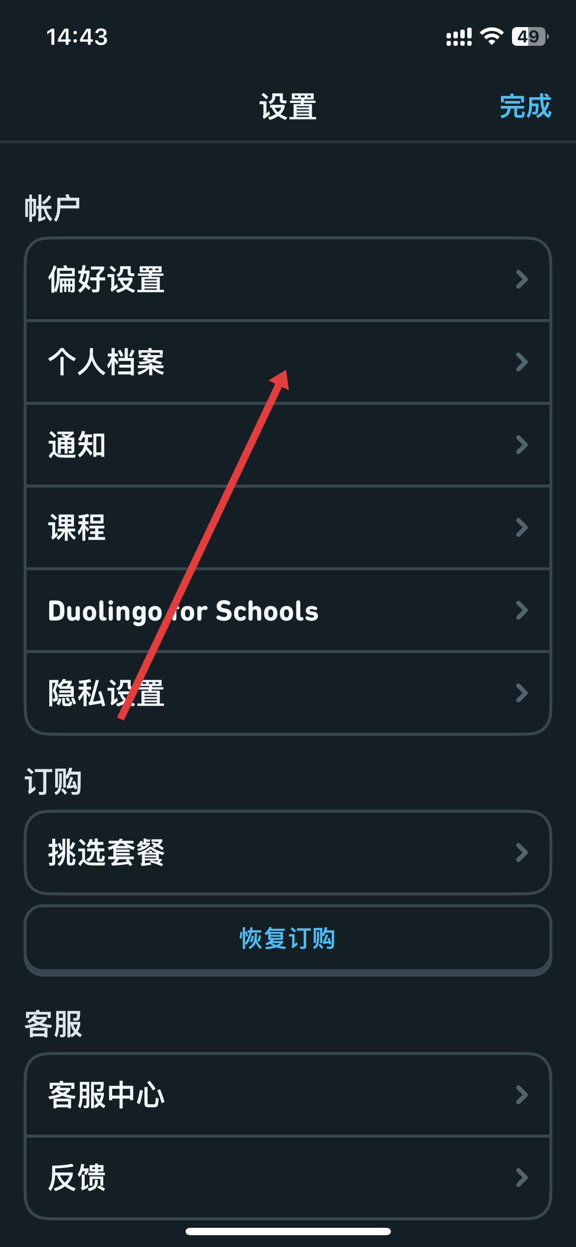 4、在設(shè)置頁(yè)面中,點(diǎn)擊個(gè)人檔案選項(xiàng)。