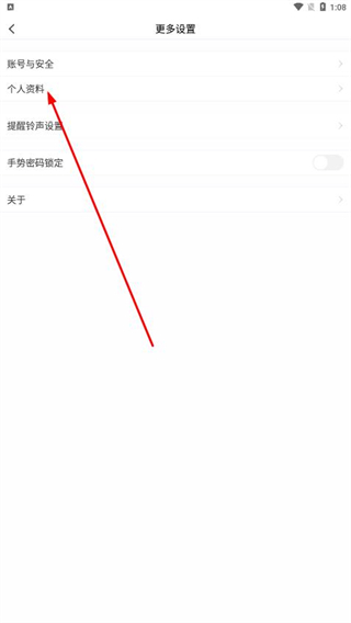 3、進(jìn)入更多設(shè)置頁面后,找到并點(diǎn)擊個人資料選項(xiàng)。