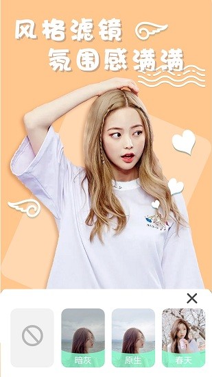 1、濾鏡拍攝:內(nèi)置多款自拍濾鏡,為自拍添加不同氛圍,一站搞定化妝、修圖、濾鏡等美顏需求