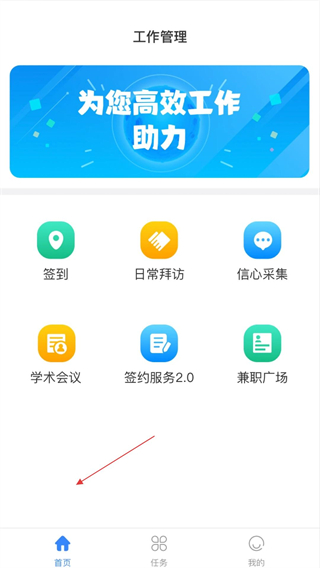 3、注冊成功后即可進入APP首頁,使用簽到、日常拜訪等工作管理功能。