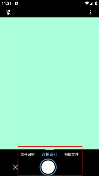 4、在拍照識別頁面選擇單張識別、連拍識別或掃描文件模式,點擊拍攝按鈕進(jìn)行識別操作。