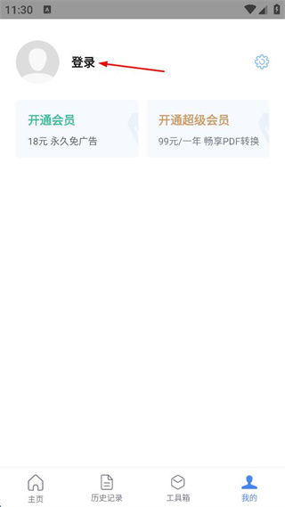 1、打開文字識別類軟件,點擊“我的”,進(jìn)入個人頁面,點擊登錄。