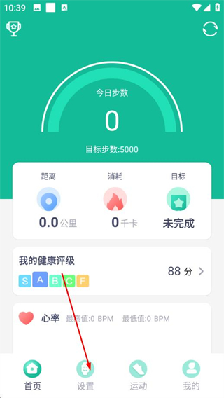 1、打開FitPro APP,點(diǎn)擊底部導(dǎo)航欄設(shè)置選項(xiàng)。