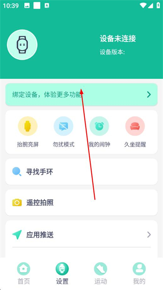2、在設(shè)置頁(yè)面,點(diǎn)擊綁定設(shè)備,體驗(yàn)更多功能選項(xiàng)。
