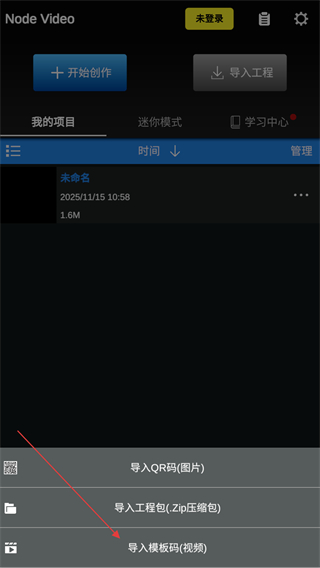 1、打開nodevideo的APP,進(jìn)入時(shí)點(diǎn)擊導(dǎo)入工程的按鈕。