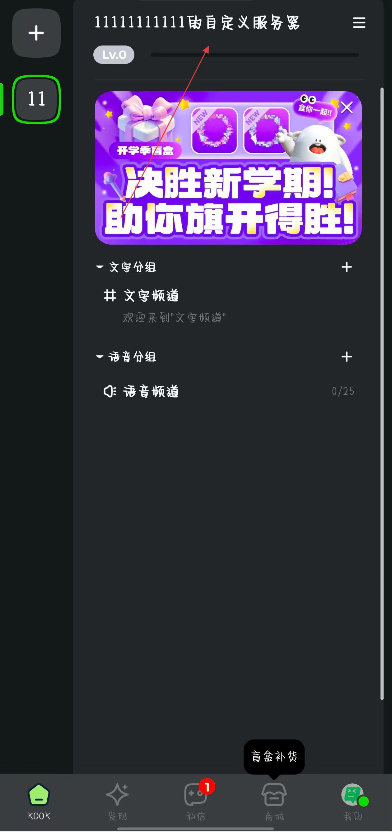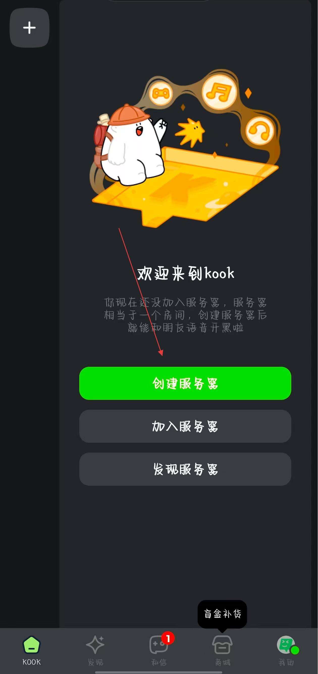 1、打開KOOKAPP,進(jìn)入主界面后,點擊創(chuàng)建服務(wù)器的入口。